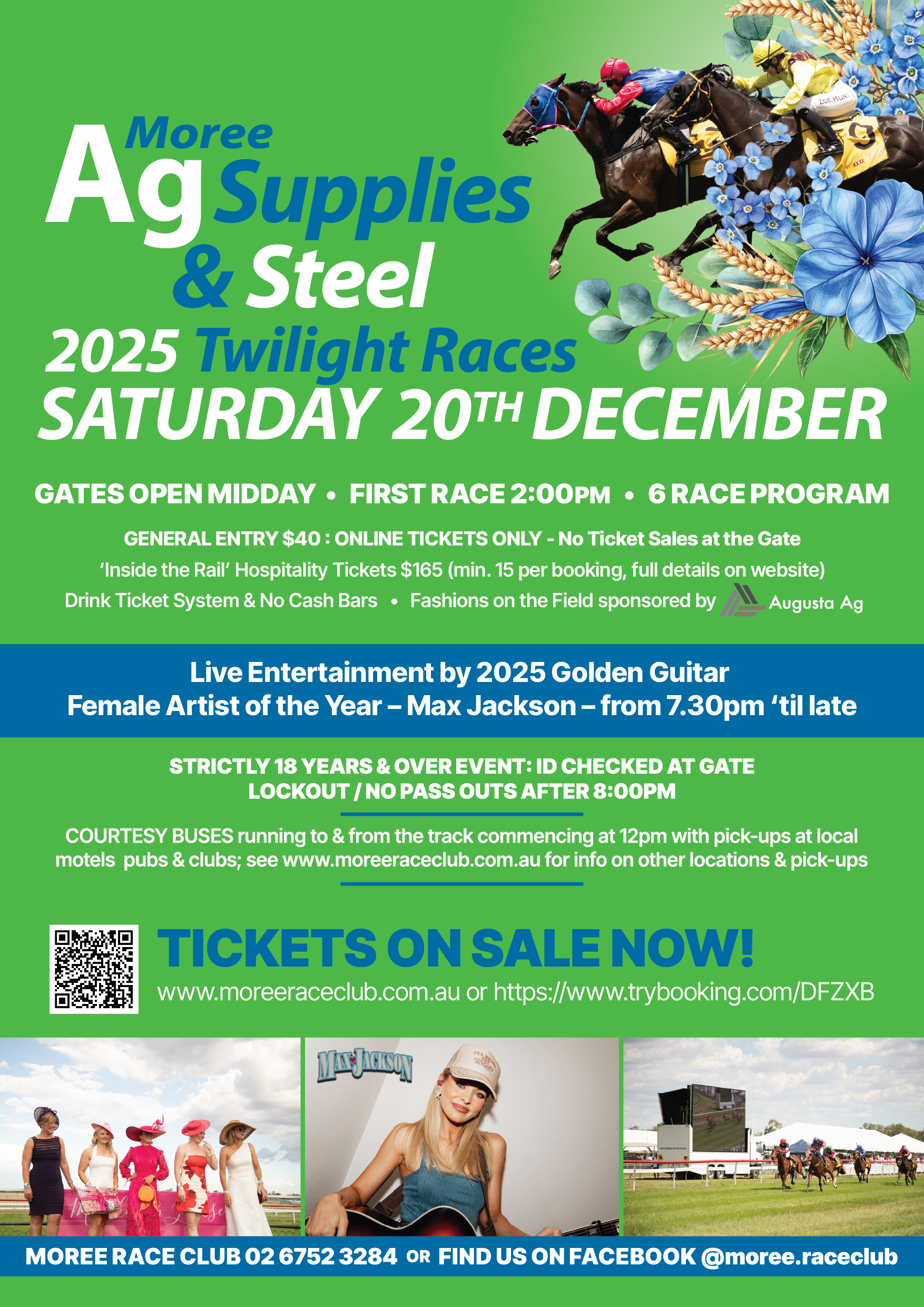 See our race dates here for all the events at the Moree Race Club. To catch up on the latest news and races also visit.
